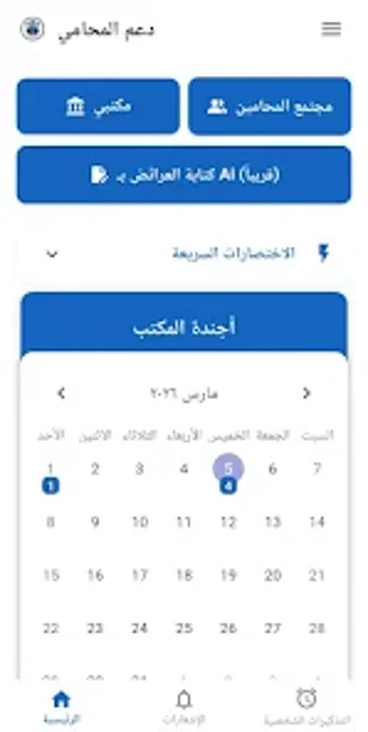 دعم المحامي は、弁護士や法律事務所向けに特別に設計された生産性アプリケーションで、日常業務のためのスマート管理システムを提供します。このアプリは、アラビア語を話すユーザーがアクセスできるように、右から左へのテキスト方向をサポートする完全なアラビア語インターフェースを提供します。主な機能には、クライアント管理、ケース追跡、文書保管、統合チャットシステムが含まれており、すべて法律のワークフローを効率化し、弁護士とクライアント間のコミュニケーションを強化することを目的としています。